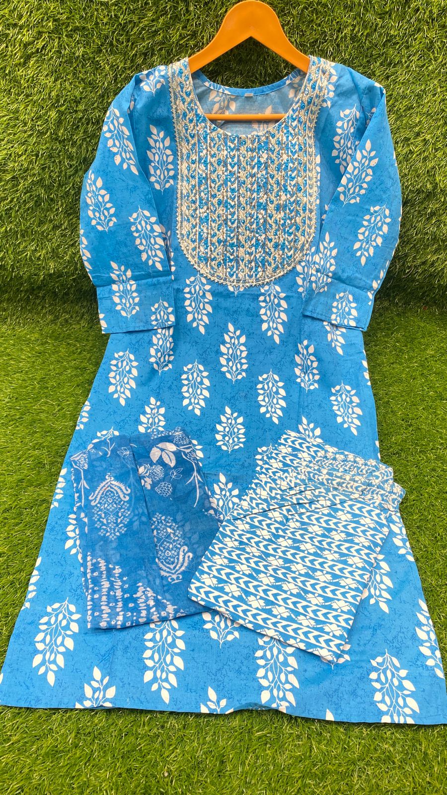 Experience the elegance of traditional craftsmanship with this Jaipuri cotton 3-piece set. Made from breathable, high-quality cotton, it offers comfort and durability ideal for daily wear. The intricate Jaipuri work adds a touch of cultural artistry, making it perfect for both casual and festive occasions. This set combines style and practicality, reflecting expert design and timeless appeal.